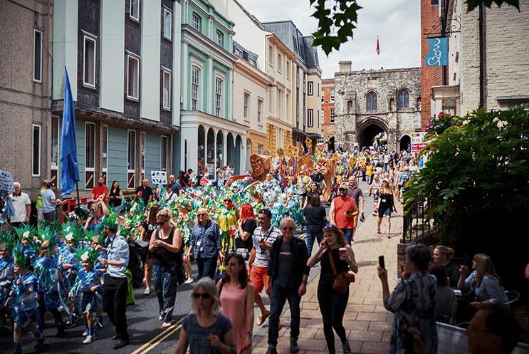 Hat Fair 2019 burst on to the streets of Winchester with the festival’s bright and colourful Carnival.